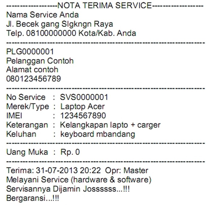 Contoh Nota Toko Sederhana Pdf from imgv2-2-f.scribdassets.com 10 contoh invoice atau faktur tagihan jasa barang. Corel computer adalah tempat service murah di tangerang selatan, kami melayani service komputrer, service laptop, jasa service panggilan, upgrade komputer, upgrade laptop. Begini cara membuat dan contoh nota yang baik dan benar. 20 contoh dan ukuran nota bukti pembayaran grafis media. Jual spanduk servis hp banner service handphone kota. Harga akan di kabarkan sebelum perbaikan. Contoh nota service komputer & hp. Implementasinya kedalam pemograman microsoft visual basic 6.0.